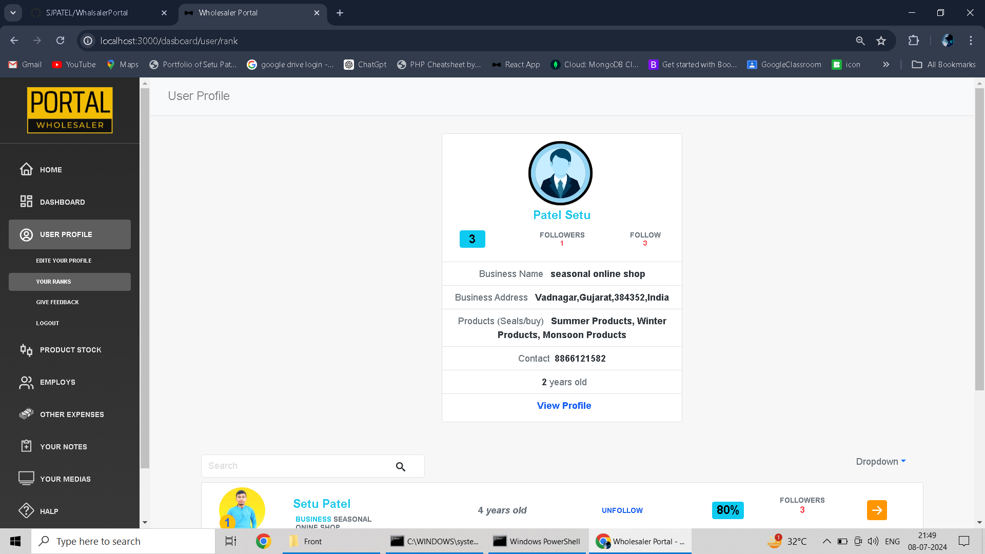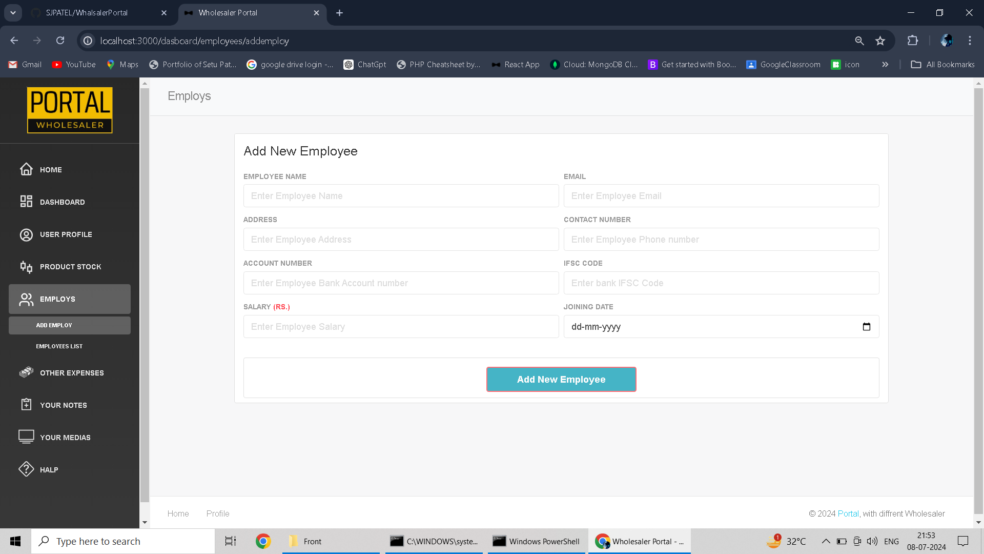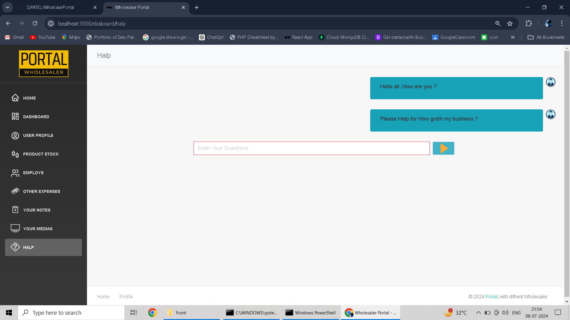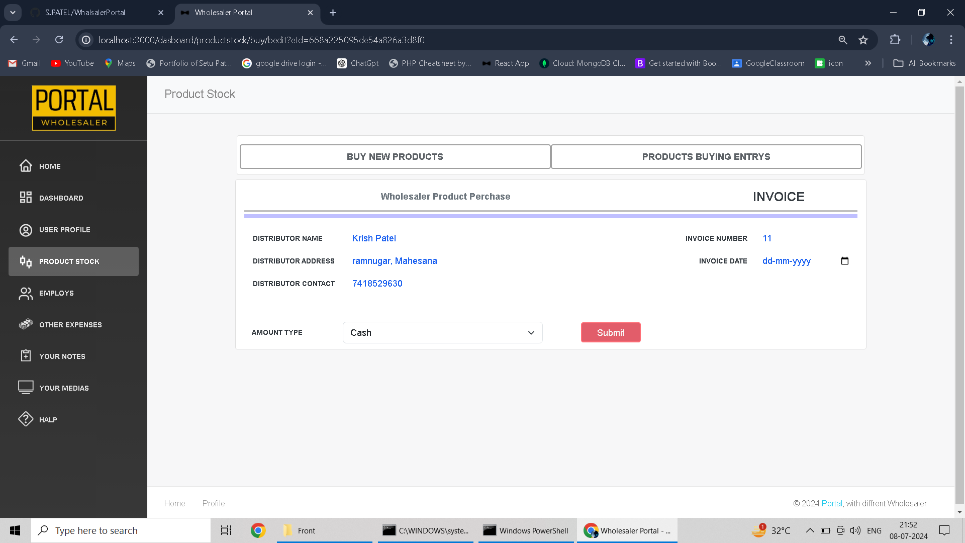I provide full-stack development in web development, utilizing a stack that includes HTML, CSS, Bootstrap 5, JavaScript, PHP, and MySQL, as well as MongoDB, ReactJS, Express, and Node.js