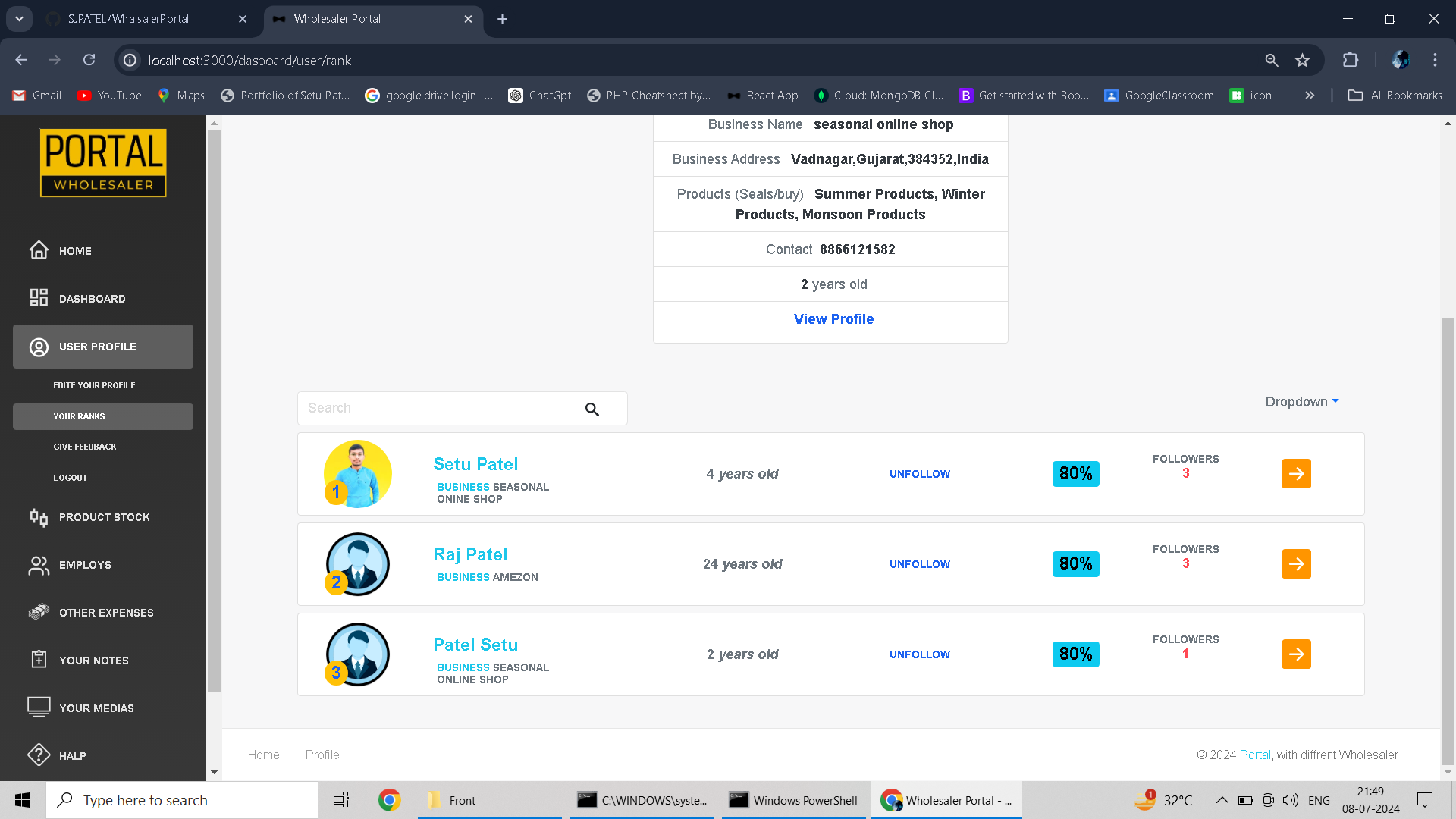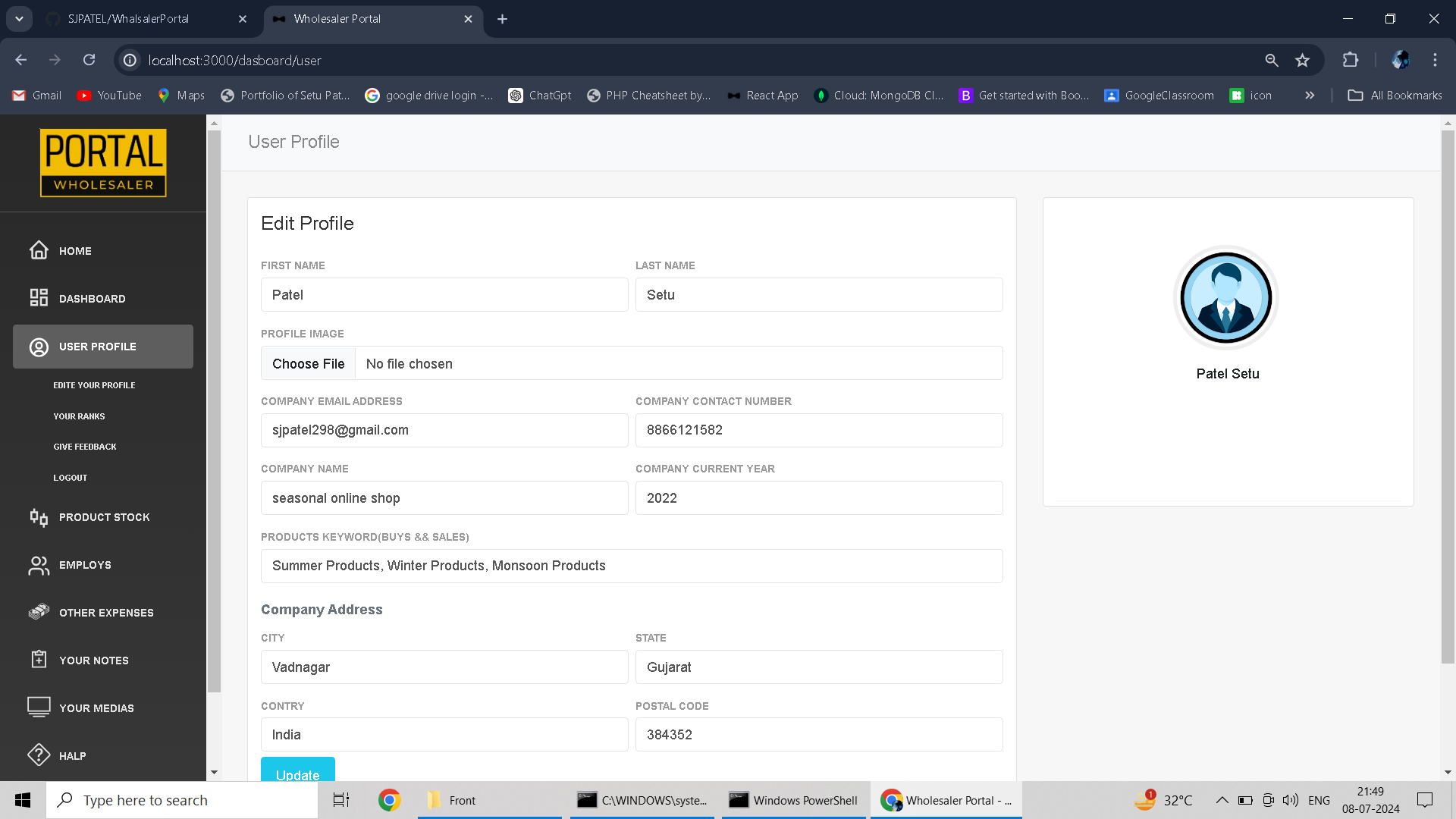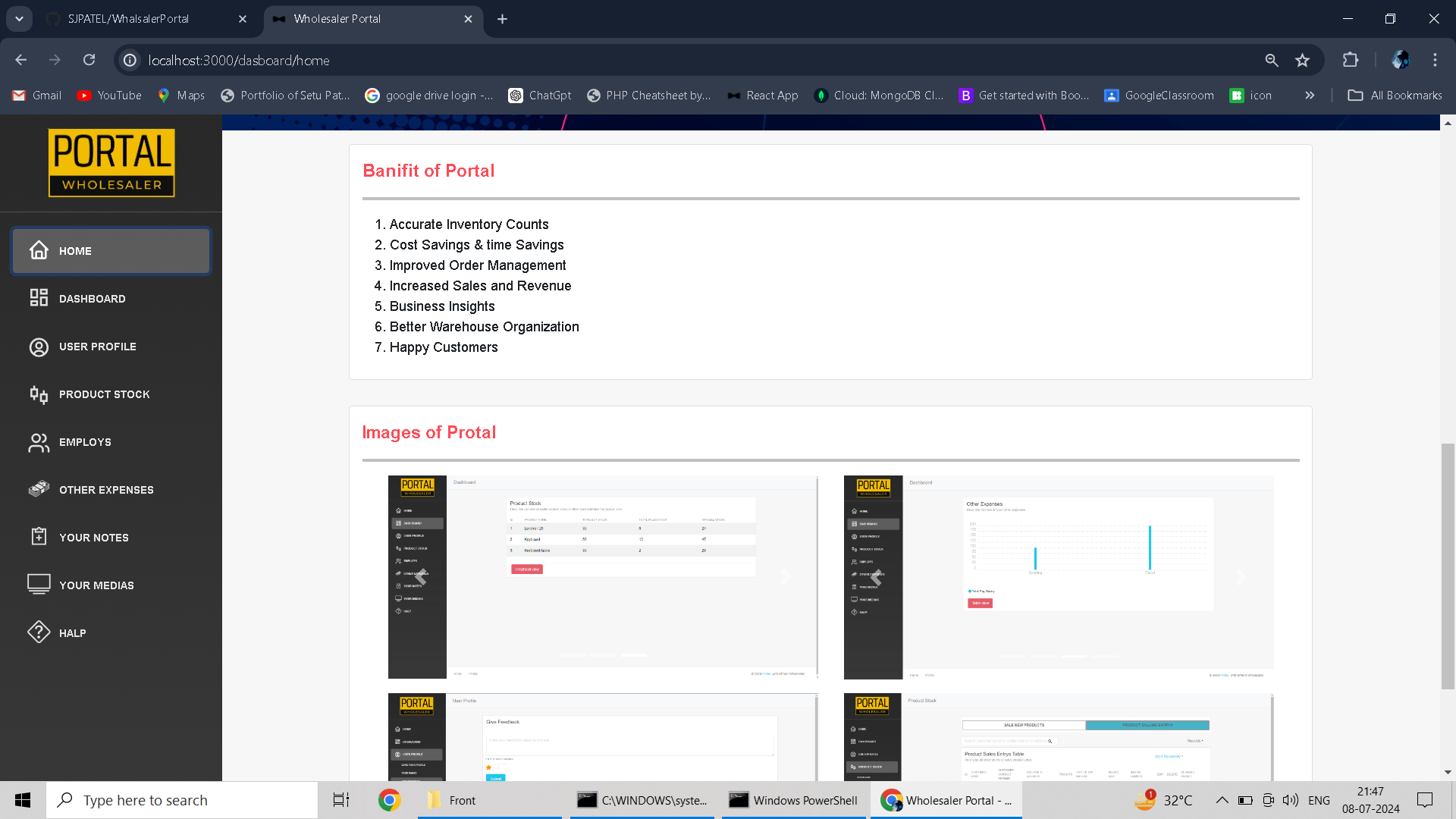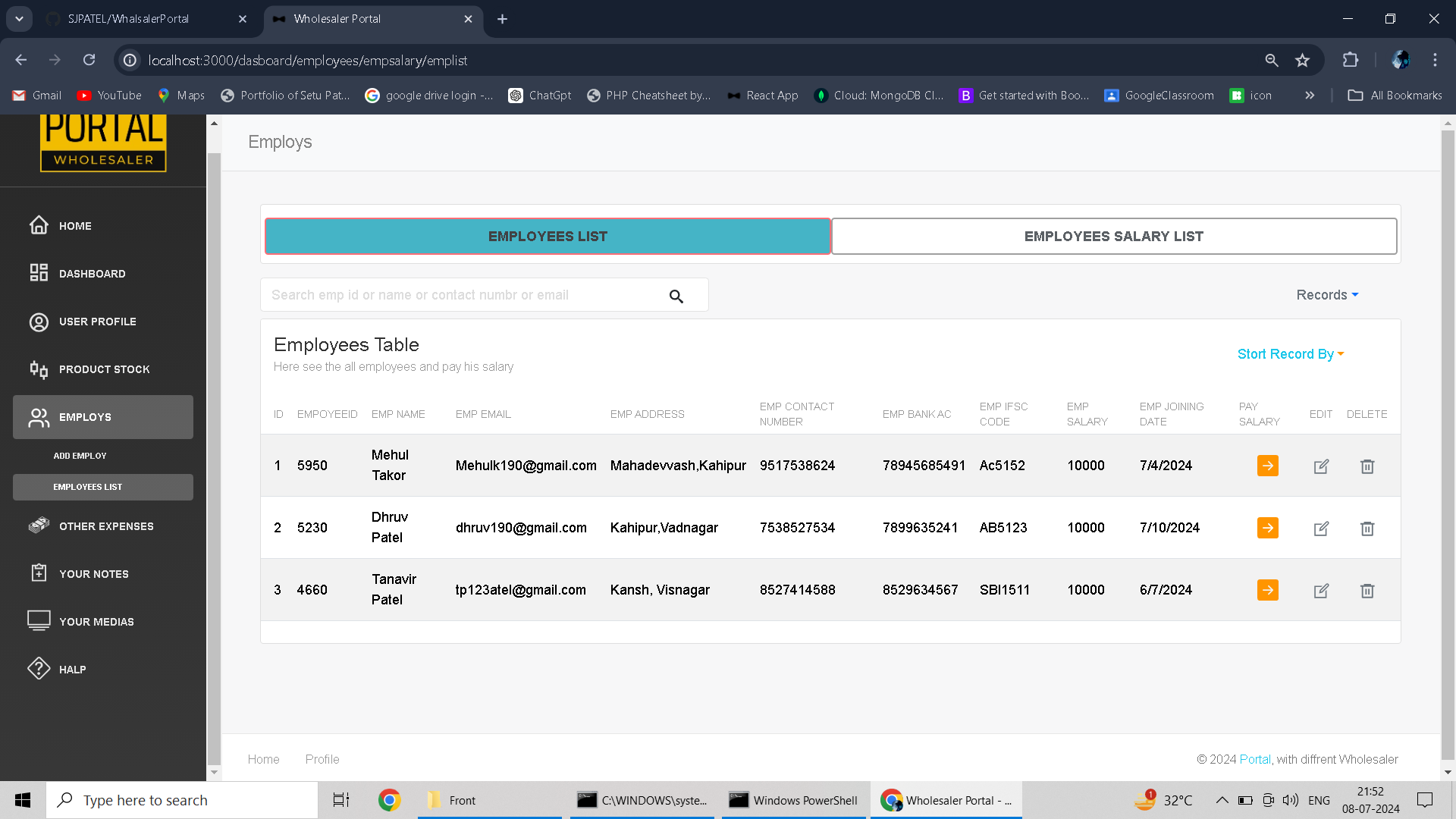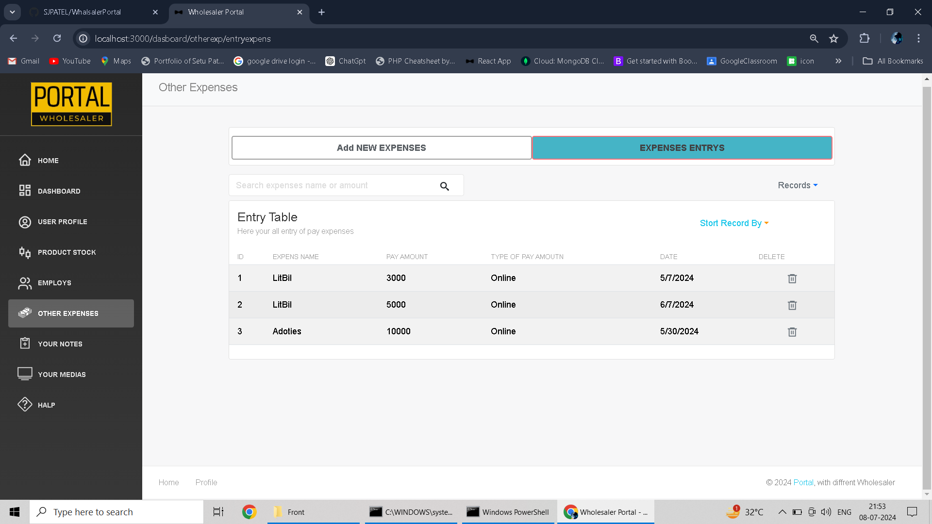 I provide full-stack development in web development, utilizing a stack that includes HTML, CSS, Bootstrap 5, JavaScript, PHP, and MySQL, as well as MongoDB, ReactJS, Express, and Node.js
