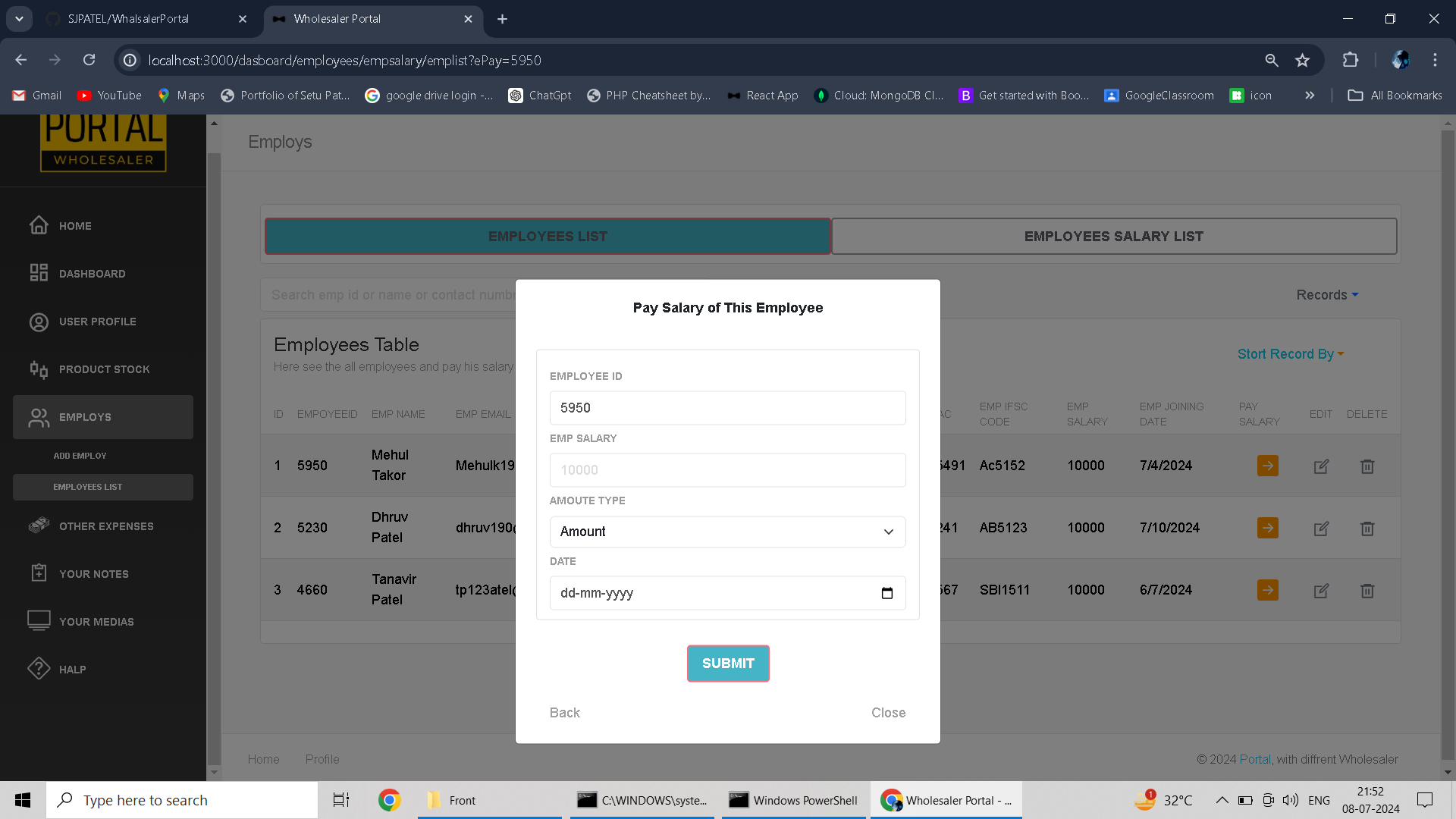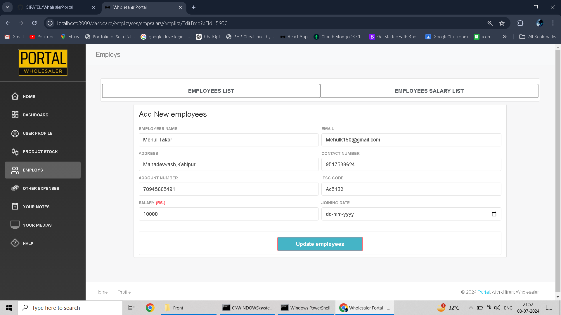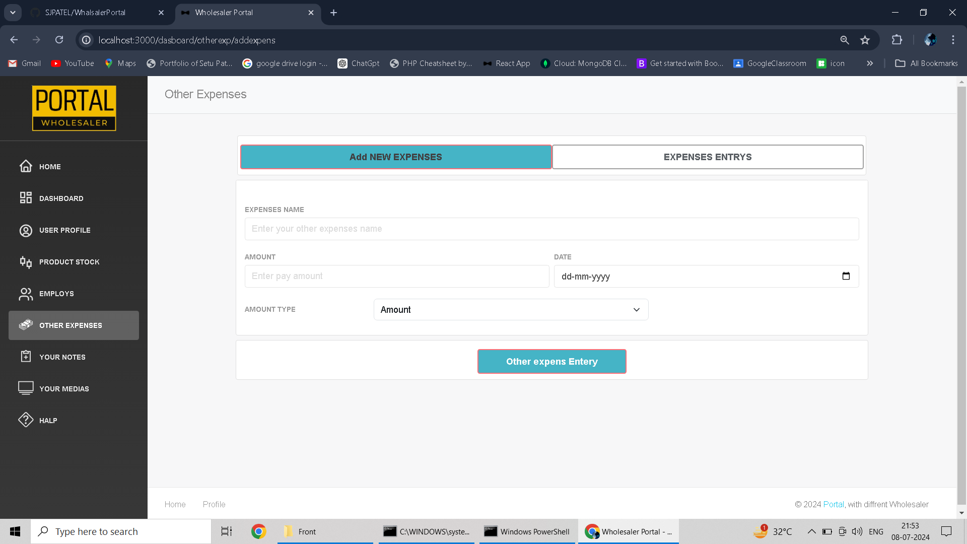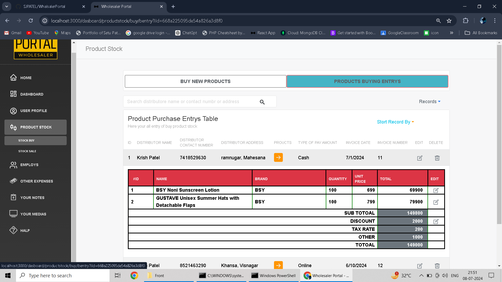 I provide full-stack development in web development, utilizing a stack that includes HTML, CSS, Bootstrap 5, JavaScript, PHP, and MySQL, as well as MongoDB, ReactJS, Express, and Node.js