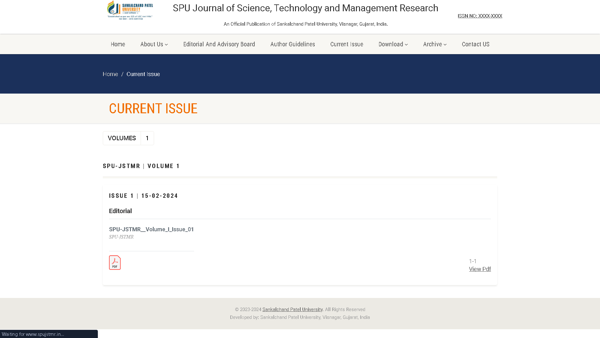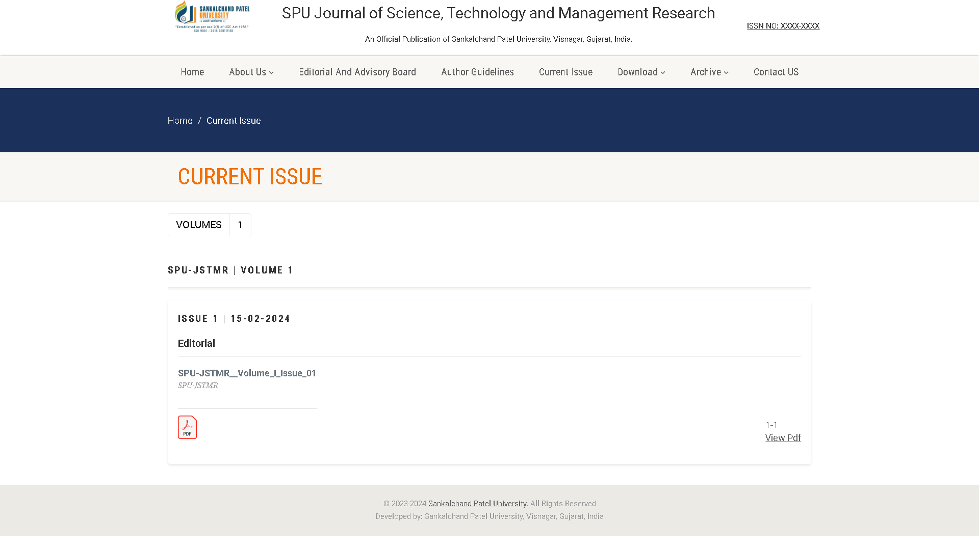 An Official Publication of Sankalchand Patel University, Visnagar, Gujarat, India.